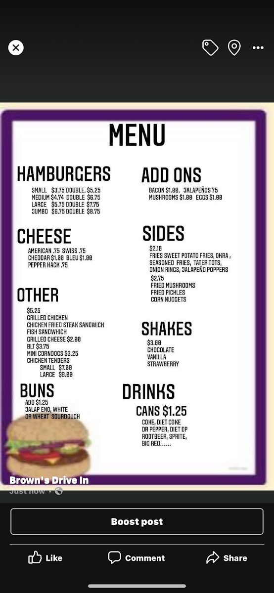 Brown's Drive In Menu